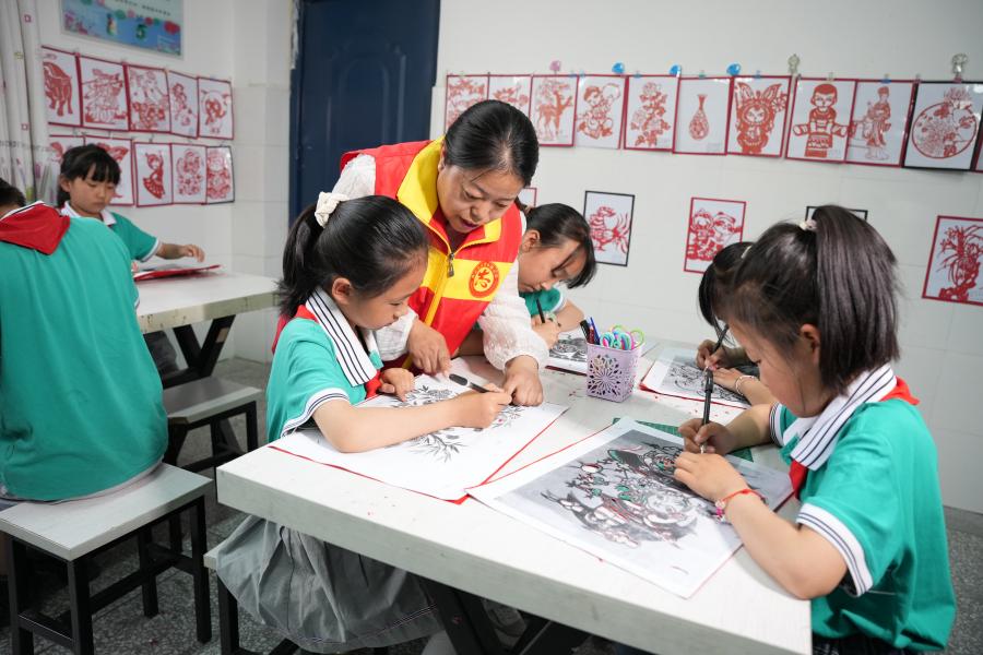 美育德育人才短缺是困扰乡村学校少年宫项目建设的最大难题。河南文明办系统着力发挥统筹协调优势,针对农村儿童心理健康、农村优质教育资源匮乏等突出问题,定期开展心理健康骨干教师培训,承办中央精神文明建设办公室等单位实施的“圆梦工程”——农村未成年人志愿服务行动。自2020年起,联合教育、文联等部门连续4年实施“快乐成长”乡村学校少年宫文艺志愿服务行动,累计派遣大学生志愿者616名,赴86个县307个乡村学校少年宫进行文艺支教,受益农村学生约16万人。同时,连续2年开展“快乐成长”暑期特别行动,招募来自全国各地294所高校约2万名大学生深入乡村学校少年宫和新时代文明实践中心(所、站),开展文艺文化、心理健康、关爱帮扶等实践活动5万场次,受益农村学生约61万人。