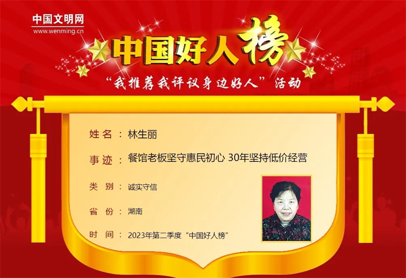 林生丽荣登“中国好人榜”