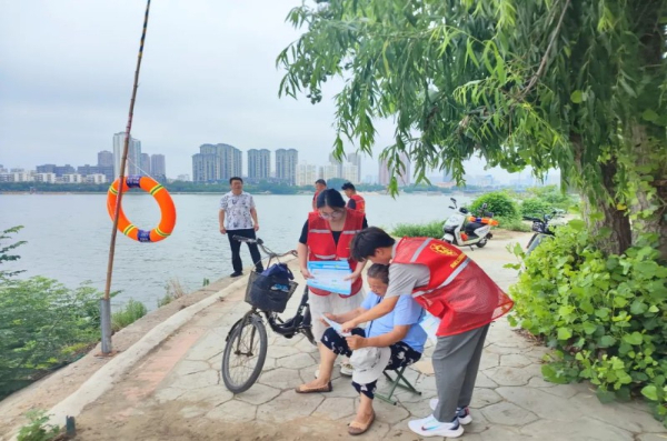 “阿姨,您带着孩子在河边一定要注意安全,看护好孩子不要让他去河边危险区域,谨防溺水事故发生。”宛城区五里堡街道大学生志愿者在巡河过程时,向河边纳凉的居民进行安全宣传。此外,将防溺水警示教育片、心肺复苏操作流程等视频发送至居民微信,到易发溺水重点地段、场所安装防溺水警示牌、救生圈、绳索等救生设备……志愿者们通过“线上+线下”的方式宣传防溺水知识,提高辖区未成年人学生和家长的自护自救能力,筑牢未成年人防溺水“安全网”。