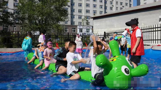 学生们参加“守护生命平安暑假”活动室外安全戏水环节。图片来源:鸡西市文明办