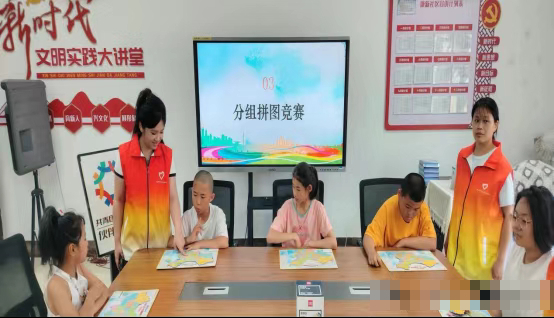 鸡冠区康新社区新时代文明实践站组织学生们参与“拼图识华夏 吾辈爱中华”活动分组拼图竞赛环节。图片来源:鸡西市文明办