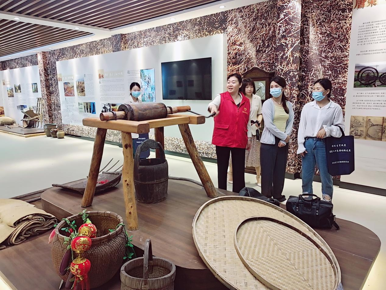 志愿者在为游客介绍孙家圩子村的农耕文化。姚利 摄