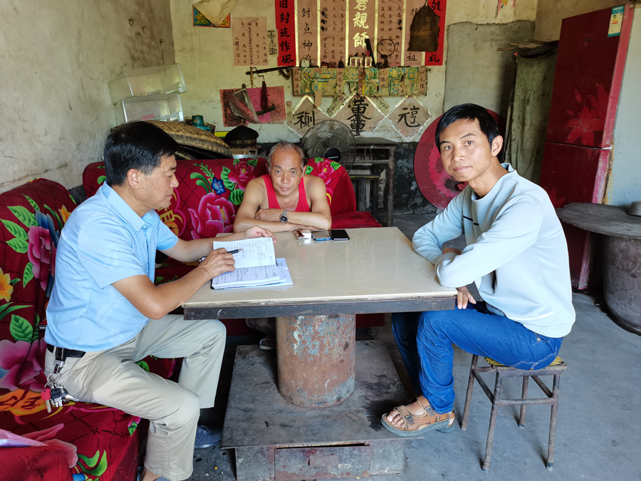 赵福乾(左一)在向村民收集资料(资料图)。(中共重庆市綦江区委宣传部供图)