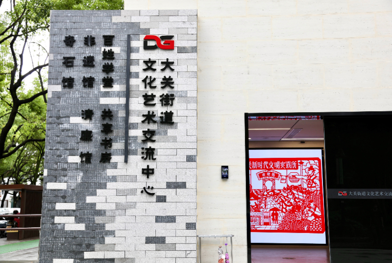 走进拱墅区大关新时代文明实践所,具有钱塘剪纸风格的大幅剪纸作品“大关新时代文明实践所欢迎您”映入眼帘。